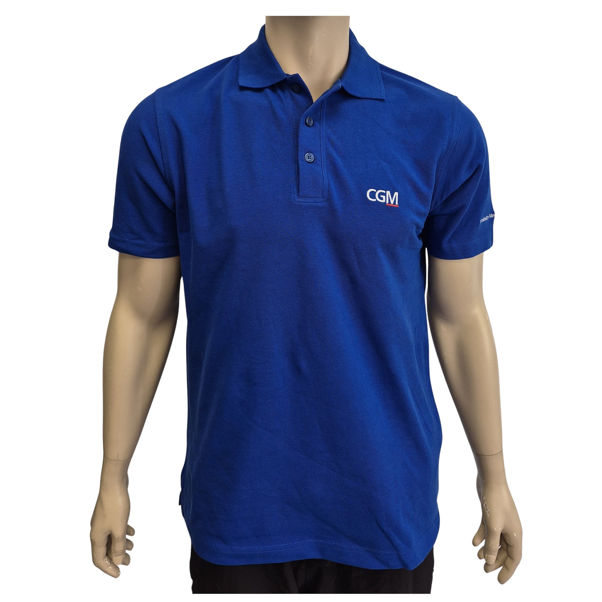 Das Poloshirt mit klassischem Schnitt in blau ist ein Basicprodukt. Der Ausschnitt besitzt eine Dreiknopf-Leiste mit farblich angepassten Knöpfen.Die Ärmel sind mit Bündchen versehen. Auf der linken Seite des Poloshirts ist in Brusthöhe das CGM-Logo in weiß eingestickt. Das Material besteht aus 100 % Baumwolle und ist bei 40° waschbar, bei niedriger Temperatur Trocknergeeignet und bei niedriger Hitze bügelbar.