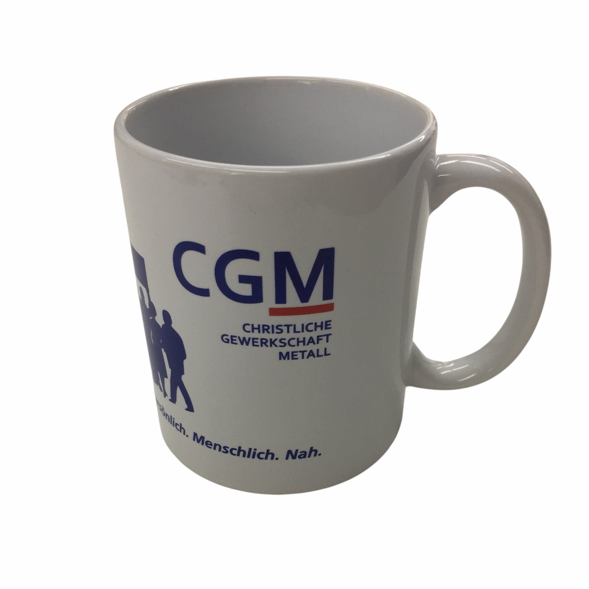 Die Werbebecher sind mit einem Sieb-Direktdruck versehen, bei welchem das Motiv in die Tasse eingebrannt und damit dauerhaft fixiert wird. So bleibt der CGM-Werbeaufdruck auch nach vielen Spülgängen unversehrt – die spülmaschinenfesten Eigenschaften sind sogar durch die DIN-Norm 12875 festgeschrieben.